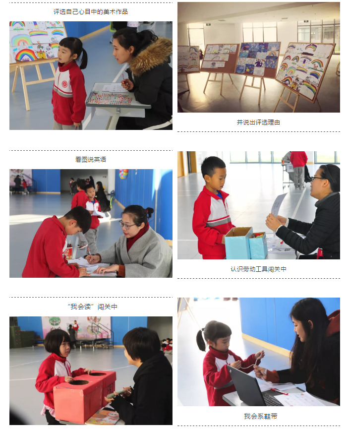 本次活動項目包含了學(xué)生所學(xué)的所有學(xué)科知識,涵蓋學(xué)校課程體系中的語言與文學(xué)、數(shù)學(xué)與思維、人文與社會、科學(xué)與技術(shù)、藝術(shù)與審美、運(yùn)動與健康、自我管理、綜合實(shí)踐。具體內(nèi)容有拼讀、識字、讀和背、認(rèn)字說詞語、看圖問答、我會數(shù)、認(rèn)左右、比大小、我會擺、我會算、會測量、會看圖列式、會解決問題、會認(rèn)角、會數(shù)角、看圖識別勞動工具、美術(shù)選作品、評作品、系鞋帶、徒手操、模唱歌曲、活動拓展。其中,學(xué)習(xí)管理一項主要是考查學(xué)生的課堂自我約束、情緒管理等認(rèn)知。