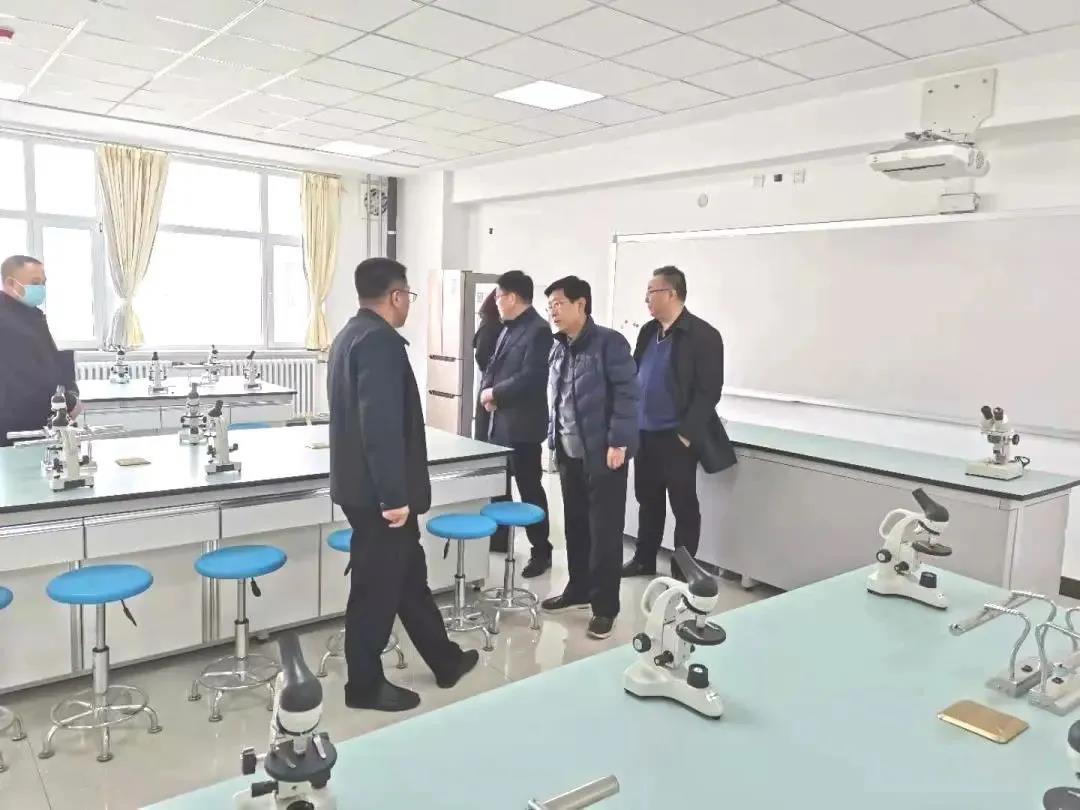 3月10日下午,由錦州市教育局劉發(fā)友副局長帶隊,基教科董雪濤科長,規(guī)劃財務科畢建民科長 ,代麗麗副科長,人事科吳長清等一行專家領導蒞臨北大青鳥同文錦州實驗學校,對我校高中部籌建工作進行檢查。專家領導視察了我校的各項基礎設施建設,包括化學、物理、生物、科學等實驗室的設施完善情況,校音樂教室、圖書室、電腦室的配備情況,高中部教學樓、運動場等項目的建設情況,以及我校的辦學資源、食品安全和后勤管理等工作。