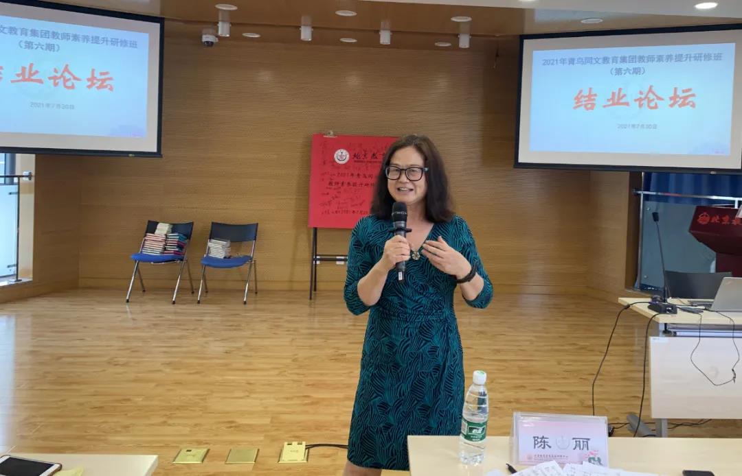 陳麗教授有感而發(fā),本次研修的安排,讓她看到青鳥同文教育對教師隊伍的重視和培養(yǎng)。教師是學(xué)校持續(xù)發(fā)展的中堅力量,這是一個有理想、有夢想、有才華的團(tuán)隊,能腳踏實地,還能仰望星空。陳教授期待大家做學(xué)習(xí)型老師,做一個終身學(xué)習(xí)者,將本次收獲學(xué)以致用,在課堂中實踐起來,叮囑老師們關(guān)注前沿教育理論,跟隨國家教育發(fā)展計劃,培養(yǎng)出對祖國、對世界有貢獻(xiàn)的人才。