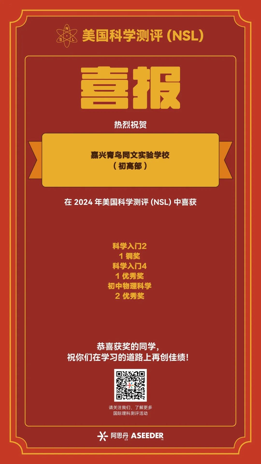 作為八年級的科學(xué)老師和科學(xué)組組長,為了進(jìn)一步提升學(xué)生的科學(xué)素養(yǎng),我鼓勵對科學(xué)感興趣的學(xué)生積極去參加各項國際科學(xué)競賽和科學(xué)活動,并為學(xué)生們提供相關(guān)的賽前輔導(dǎo)。在本次美國科學(xué)測評(NSL)活動中,七年級的 Cherry,八年級的Avaneesh和九年級的Bessy經(jīng)過前期充分的備考準(zhǔn)備,憑借他們扎實的科學(xué)基礎(chǔ),穩(wěn)定輸出,在激烈的角逐中,脫穎而出,獲得全球優(yōu)秀獎。祝賀他們!希望在接下來的競賽活動中,再創(chuàng)佳績!