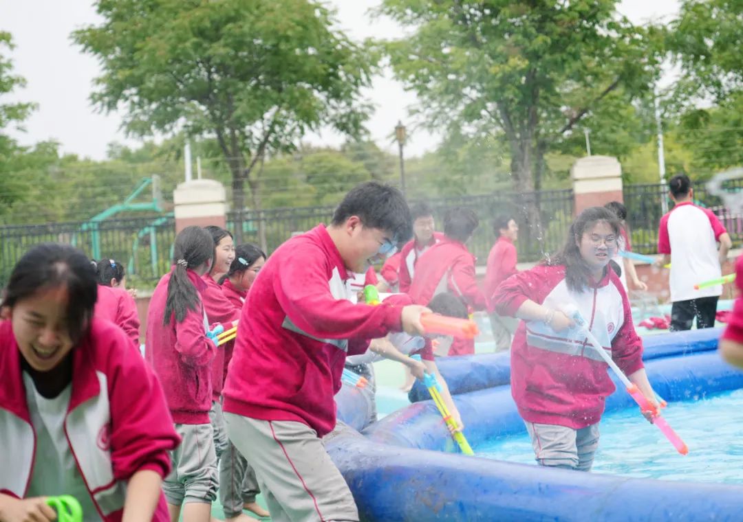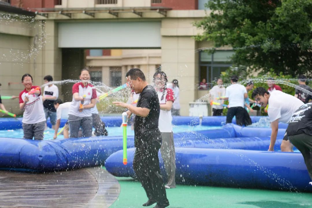 在同學(xué)們的盛情邀約下,平日里嚴(yán)肅的老師們也加入其中,師生同樂,共享這份夏日的清涼。