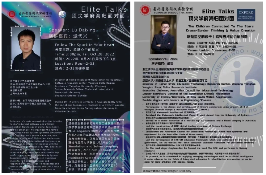 今年,我們和清華長(zhǎng)三角研究院人才庫(kù)合作,開(kāi)設(shè)海外精英面對(duì)面論壇,結(jié)合時(shí)下流行話題及相關(guān)行業(yè)發(fā)展態(tài)勢(shì),為孩子們帶來(lái)別開(kāi)生面,意義非凡的分享!