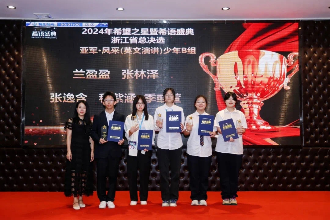 上學(xué)期經(jīng)歷了一系列選拔,同文的學(xué)子在暑期參加了希望之星英語演講比賽浙江省總決賽,并最終獲得了少年B組亞軍,可喜可賀!
